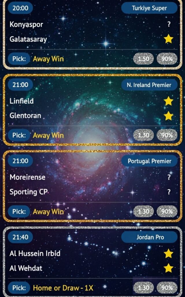 Football betting enthusiasts, get ready for high-odds picks! Today’s featured matches include Konyaspor vs Galatasaray, Linfield vs Glentoran, Moreirense vs Sporting CP, and Al Hussein Irbid vs Al Wehdat. Elite match odds with 90% confidence levels await.